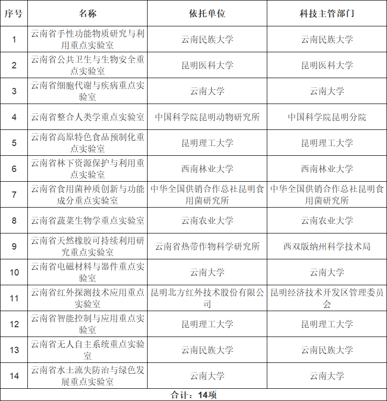 14个省重点实验室