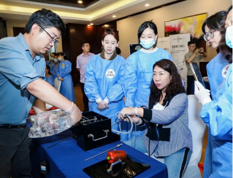 本次大会精心打造了两场精品实操班:“子宫输卵管超声造影精品培训班”“宫腔镜整复性手术技能提高班”。会议特别邀请到首都医科大学附属复兴医院黄晓武教授进行现场指导和教学,现场学员热情高涨、专家们全程零距离、手把手指导,采用Workshop标准化宫腔镜培训模式(四站)一宫腔镜体拆装、宫腔镜定点取物与刨削、宫腔镜冷刀技术、宫腔镜电切技术;全方位、系统地对学员进行培训。在生殖医学科医护团队的指导下,学员们分组“沉浸式”从宫腔置管流程、造影剂推注到动态影像采集,逐步掌握操作技巧。不仅提升了云南省基层医疗机构在该领域的技术水平和诊断能力,也为推动生殖医学优质医疗资源下沉奠定了坚实基础。